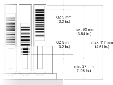 For guidance on barcode positioning on tubes, microplates, and carriers, refer to the following figures. QZ indicates the quiet zone of the barcode.
