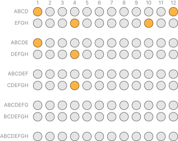 [Option 2] The first two wells (A and B) or last two wells (G and H) in one column, and any four wells in an adjacent column. |