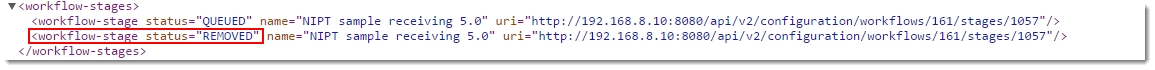 The API of the selected samples now shows an additional workflow stage with a status of REMOVED.