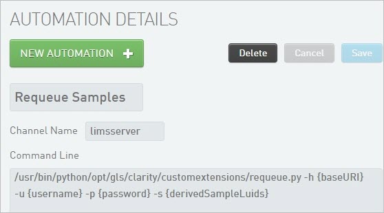 | • | In the Channel Name field, enter the channel to be used for this automation (for more information, refer to Automation Channels in the Clarity LIMS API documentation section). |