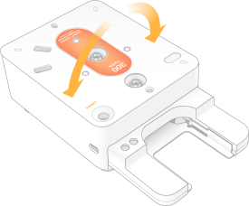 | 3. | Segure a lâmina de fluxo pela aba cinza com o rótulo voltado para cima. |