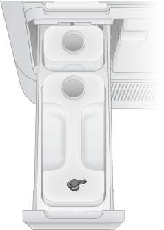 使用上方提把,從已使用的試劑抽屜正面取出已使用的大型試劑瓶。 |
